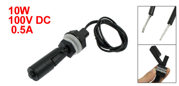 Product Name Water Level Sensor Contacts NO+NC Max Contact Rating 10W Max Switching Voltage 100V DC Max Switching Current 0.5A Max Breakdown Voltage 220V DC Max Carry Current 1.0A Max Contact Resistance 100mΩ Temperature Rating -10 ~ +60 °C / +85 °C Float Ball Material PP Float Body Material PP Float Ball Size(Approx) 25 x 17.7mm /0.98" x 0.7"(L*D) Hex Head Size(Approx) 21.06mm/0.83" 23.3mm/0.92" Body Total Length 93.5mm/3.68" Cable Length 39cm / 15.3" Color Black Net Weight 25g Package Content 1 x Water Level Sensor - Reviews