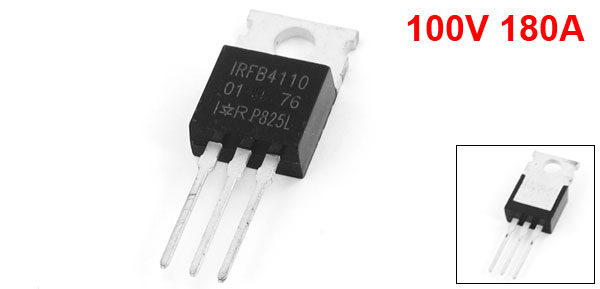 Product Name Silicon Transistor Model No. IRFB4110 Mounted Type Through Hole Current 180A Voltage 100V Mounting Hole Diameter 3.6mm / 0.14" Pin Size 13 x 2mm / 0.5" x 0.08" ( L* Pitch) Total Size 19 x 9 x 4mm / 0.75" x 0.35" x 0.16" (L*W*H) Main Material Silicon Main Color Black, Silver Tone Weight 4g Package 1 x Silicon Transistor - Reviews