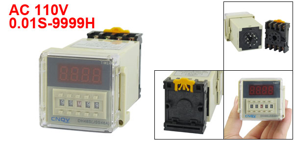 Product Name Digital Time Relay Type DH48S(JSS48A) Contact Type DPDT Rated Voltage AC/DC36V Frequency 50/60 Hz Contact AC 250V 5A Resistive Load Time Range 0.01S-99H99M Mount Rail Type 35mm DIN Rail Base Mount Hole Size 4 x 4mm/0.16" x 0.16"(L*W) Panel Size 50 x 50mm/2" x 2"(L*W) Mounted Size 45 x 45 x 95mm/1.8" x 1.8" x 3.7"(L*W*Depth) Total Size 48 x 60 x 109mm/1.9" x 2.4" x 4.3"(L*W*H) Color Beige, Black Net Weight 137g Package Content 1 x Digital Time Relay w Socket - Reviews