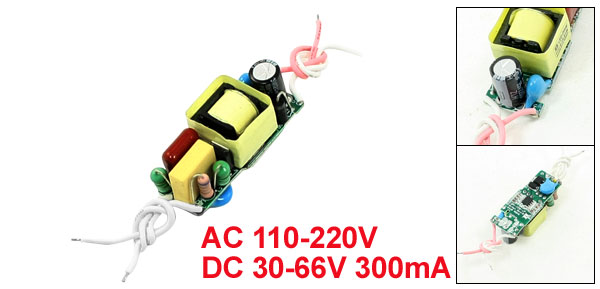 Application for (6-10) x 1W LED Input Voltage AC 110-220V Output Voltage DC 30-66V Constant Current 300mA±5% Size (not include cable) 43 x 15 x 10mm/ 1.7" x 0.6" x 0.4" (L*W*H) Material Electronics Color As Picture Show Weight 16g
