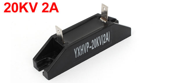 Product Name Rectifier Diode Model PR-HVP-20 Repetitive Peak Reverse Voltage 20KV(20000V) Max.Peak Forward Voltage 22KV Max. Average Forward Surge Current 50A Max. Average Forward Rectified Current 2A Pin Number 2 Pin Pitch 41mm/1.6" Pin Size 12 x 6cm/ 0.47" x 0.24" (L*W) Hole Dia 4mm/0.16" Total Dimension 77 x 20 x 19mm/ 3.1" x 0.8" x 0.75" (L*W*T) Color Black Net Weight 33g Package Content 1 x Rectifier Diode - Reviews