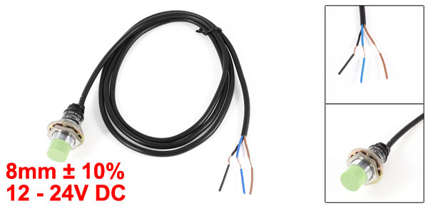 Product Name Proximity Sensor Model PR18-8DN Detecting Distance 8mm ± 10% Standard Detecting Target 25 x 25 x 1mm Setting Distance 0 to 5.6 Power Supply 12 - 24V DC Current Consumption Max. 10mA Response Frequency 200Hz Residual Voltage Max. 15V Control Output 200mA Insulation Resistance Min. 50M ohm Dielectric Strength 1500V AC, 50/60Hz for 1 Minute Ambient Temperature -25C to 70C Protection IP67 Output Type NPN NO(Normal Open) Column Sensor Diameter 16mm/0.63" Thread Diameter 18mm/0.71" Cable Length 144cm/4.7ft Weight 51g Package Content 1 x Proximity Sensor - Reviews