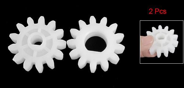 Product Name Spur Gear Material Propene Polymer Color White Teeth Number 13 Size 4.8 x 1.2cm / 1.9" x 0.5"(D*H) Diameter Big: 1.9cm / 0.75" Small: 1cm / 0.4" Weight 23g Package Content 2 x Spur Gear - Reviews