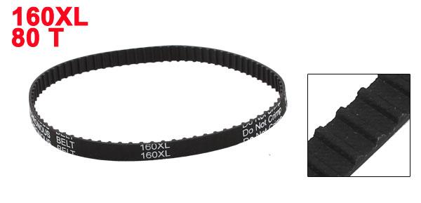 Product Name Timing Belt Model 160XL Code Number 037 Number of Teeth 80 Teeth Pitch 5.08mm / 0.2" Belt Width 9.5mm / 0.37" Pitch Length 406.4mm/ 16" Material Rubber Color Black Weight 11g Package Content 1 x Timing Belt - Reviews