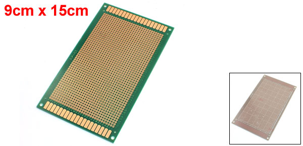 Product Name Universal PCB Board Hole Dia(Approx) 1mm / 0.039" Hole Pitch(Approx) 2.54mm / 0.1" Size(Approx) 90 x 150mm / 3.9" x 5.9"(W*L) Thickness(Approx) 1.6mm / 0.063" Material FR-4 Color Copper Tone, Green Net Weight 36g Package Content 1 Pcs x Universal PCB Board - Reviews