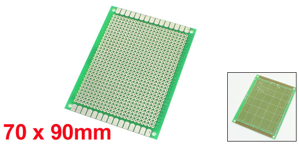 Product Name Universal PCB Board Hole Dia(Approx) 1mm / 0.039" Hole Pitch(Approx) 2.54mm / 0.1" Size(Approx) 70 x 90mm / 2.8" x 3.5"(W*L) Thickness(Approx) 1.6mm / 0.063" Material FR-4 Color Silver Tone, Green Net Weight 17g Package Content 1 Pcs x Universal PCB Board - Reviews