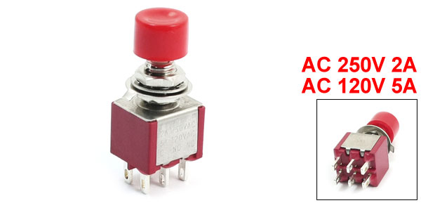 PS821M1 Momentary Red Push Button Toggle Switch DPDT AC250V 2A 120V 5A