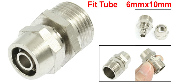 Product Name Quick Coupler Thread Size PT 3/8" Thread Diameter 16mm Fit Tube 6 x 10mm / 0.24" x 0.39" (Inner D*Outer D) Overall Size 26 x 17mm/ 1.02" x 0.67" (L*W) Color Silver Tone Material Metal Weight 19g Package Content 1 x Quick Coupler - Reviews