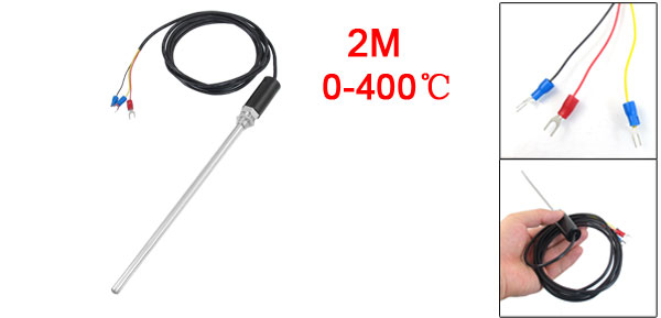 Product Name Thermocouple Transfer Type PT100 Temperature Range 0 to 400 Celsius Mounting Thread Dia 11mm / 0.43" Probe Size 190 x 7mm / 7.5" x 0.28" (L*D) Wire Length 2M / 6.6Ft External Material Plastic, Metal Fork Terminal Quantity 3 Fork Terminal Spacing 4mm / 0.157" Main Color Black Weight 77g Package Content 1 x Thermocouple - Reviews