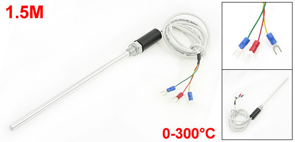 PT100 3 Fork Terminals Thermocouple Temperature Sensor Probe 1.5M 300C