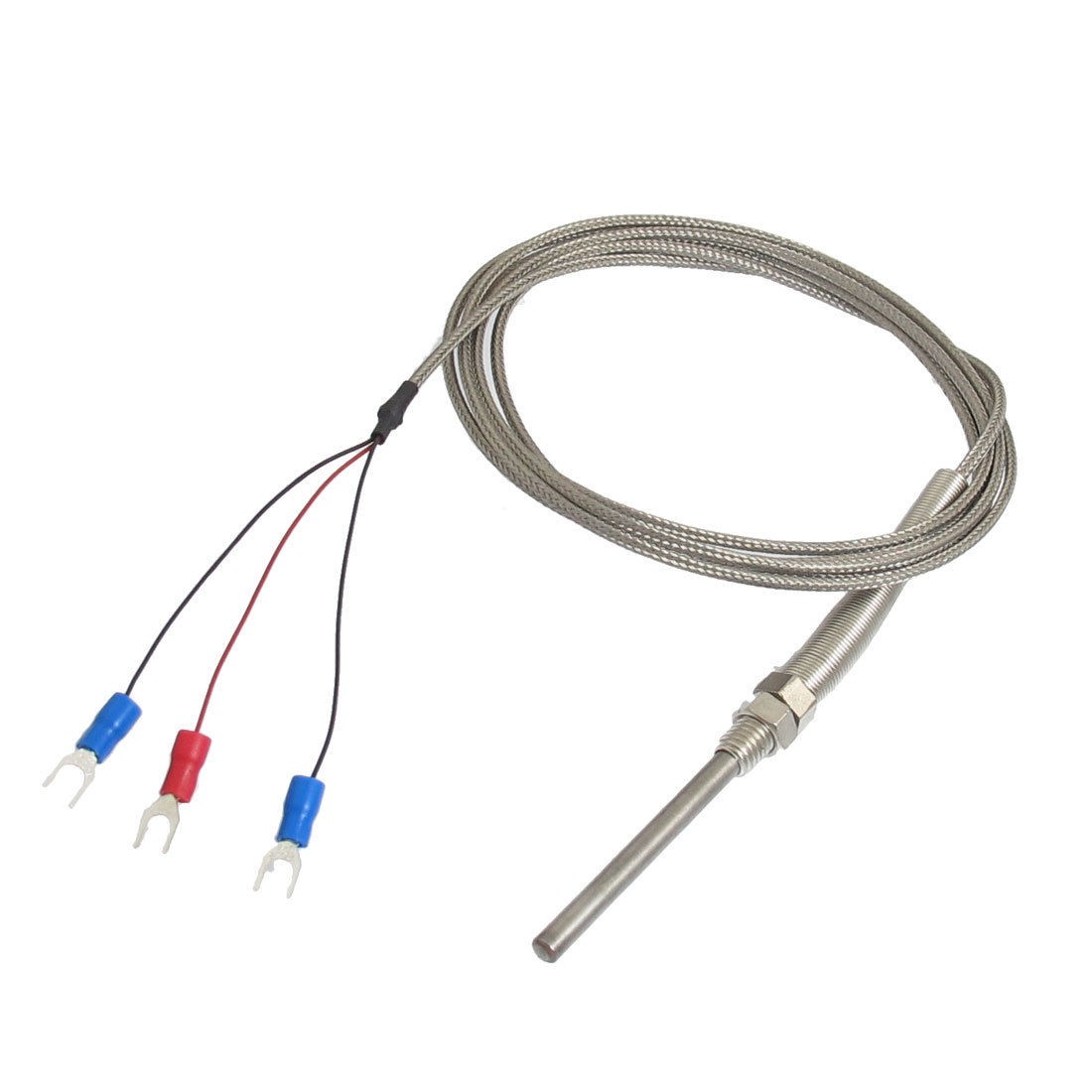 Product Name Thermocouple Transfer Type PT100 Temperature Range 0 to 230 Celsius Mounting Thread Dia 8mm / 0.315" Probe Size 50 x 5mm / 2" x 0.2" (L*D) Wire Length 2M / 6.6Ft External Material Plastic, Metal Fork Terminal Quantity 3 Fork Terminal Spacing 4mm / 0.157" Main Color As Picture Shown Weight 49g Package Content 1 x Thermocouple - Reviews