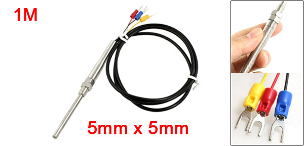PT100 5mm x 5mm 1 Meter Temprature Sensor Thermocouple Probe