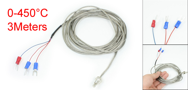 Product Name Thermocouple Transfer Type PT100 Temperature Range 0-450 Celsius Wire Length 3 Meters / 9.8Ft Mounting Thread Dia 6mm / 0.24" Probe Size 10 x 4.5mm / 0.4" x 0.17" (L*D) External Material Plastic, Metal Fork Terminal Quantity 3 Fork Terminal Spacing 4mm / 0.157" Main Color Silver Tone Weight 43g Package Content 1 x Thermocouple - Reviews