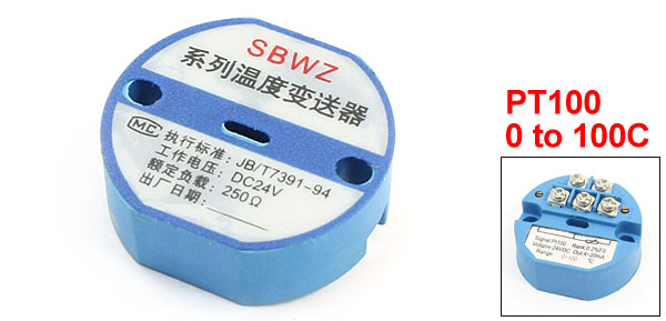 Product Name Temperature Sensor Transmitter Sensor PT100 Temperature Range 0 to 100C Output Current 4-20mA Power Supply 24V DC Resistance 250 Ohm Total Size 4.3 x 2.3cm/1.7" x 0.9"(D*T) Material Plastic, Metal Color Blue, Silver Tone Net Weight 36g Package Content 1 x Temperature Sensor Transmitter - Reviews
