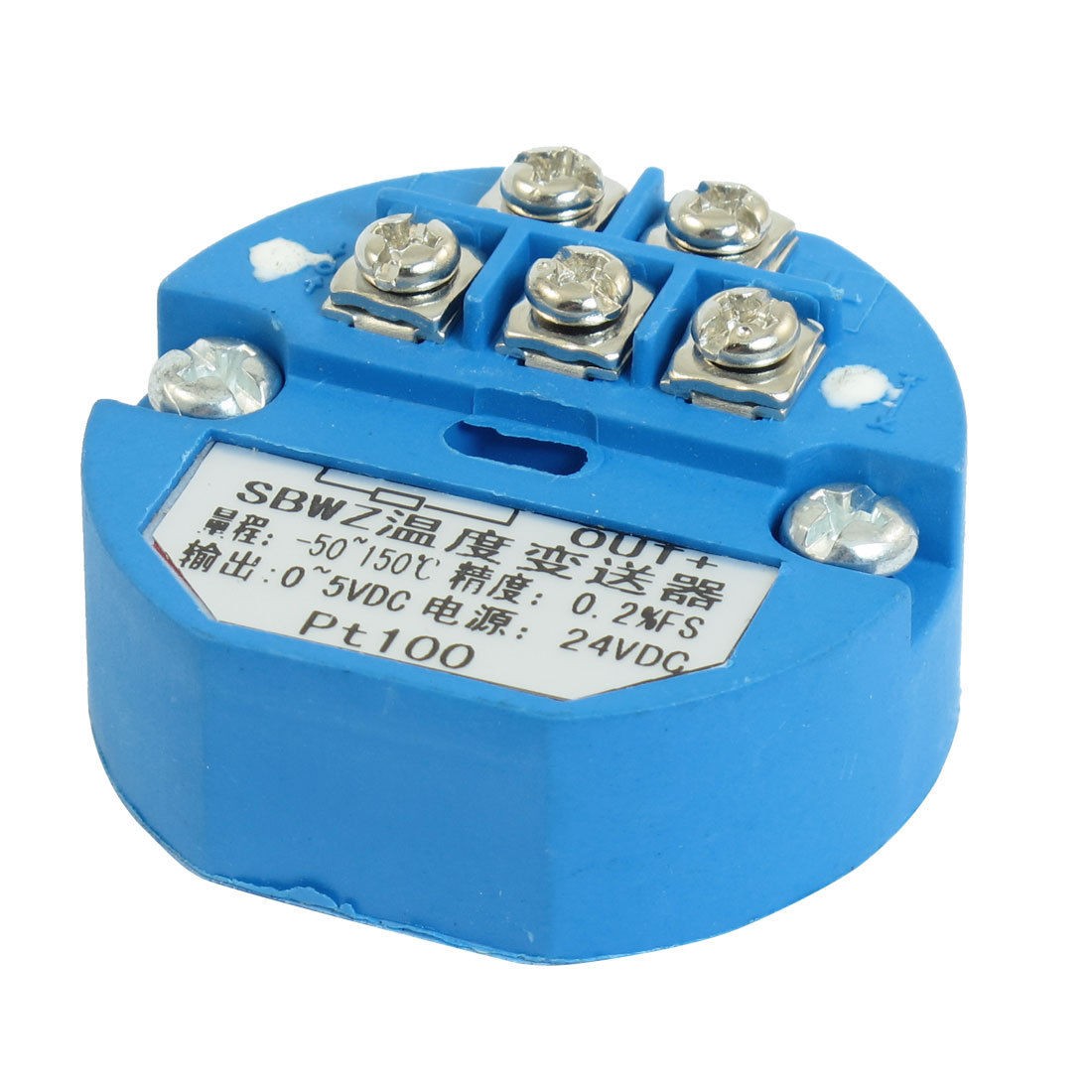 Product Name Temperature Transmitter Model SBWZ Material Plastic Type PT100 Temperature Range -50-150 Celsius Degree Output Voltage 0-5V DC Power Supply 24V DC Rated Load 250 Ohm Precision 0.2% Size 4 x 4.3 x 2cm/1.6" x 1.7" x 0.8"(L*W*T) Color Blue Net Weight 26g Package Content 1 x Temperature Transmitter