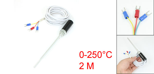 PT100 Type 250C 13cm Probe Thermocouple Probe Sensors 2M 6.5Ft Long