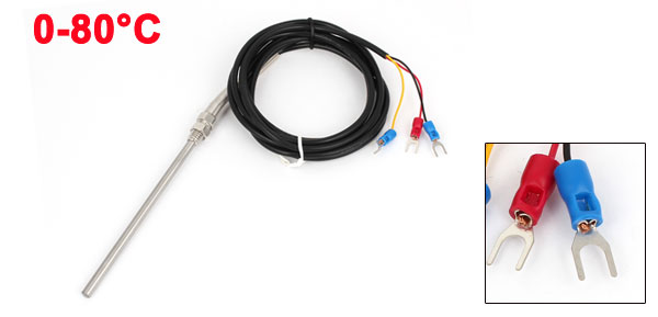Product Name Thermocouple Transfer Type PT100 Temperature Range 0-80°C Thread Diameter 7.8mm / 3.1" Probe Diameter 5mm/ 0.19" Fork Terminal Spacing 4.3mm / 0.17" Probe Length 120mm/ 4.7" External Shielding Rubber Shield Total Length 2m/ 6.5Ft Color Black, Silver Tone Weight 63g Package Content 1 x Thermocouple - Reviews