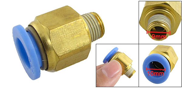 Product Name Quick Fitting Medium Air & Water Material Plastic, Metal Thread Diameter (Approx.) 9mm Inner Diameter (Blue End) 10mm Total Dimension (Approx. ) 27 x 17mm / 1.1" x 0.67"(Max. L * D) Color Gold Tone & Blue Weight 16.5g Package Content 1 x Quick Fitting - Reviews