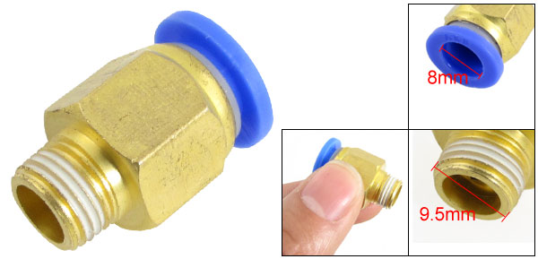 Item Name Quick Fittings Total Size 2.5 x 1.8cm/0.98" x 0.7" (L*W) Thread Outer Diameter 9.5mm/0.37" Inner Diameter (Blue End) 8mm / 0.3" Material Nickel-plated Brass & Plastic Color Gold Tone, Blue Weight 10g Package Content 1 x Quick Fittings - Reviews