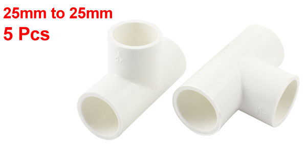 PVC-U 25mm to 25mm T Shape 3 Ways Tee Pipe Tube Connector Adapter White 5PCS