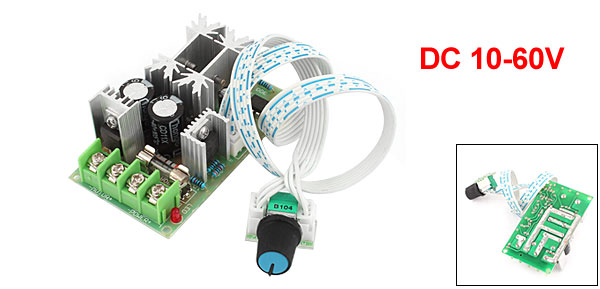 Product Name PWM DC Motor Speed Regulator Input Voltage DC 10-60V Current 20A Size(Approx) 78 x 45 x 26mm/ 3.1" x 1.8" x 1"(L*W*T) Cable Length 40cm/16" Material Aluminum, PCB, Plastic Color Black ,Green, White, Silver Tone Weight 83g Package Content 1 x PWM DC Motor Speed Regulator - Reviews