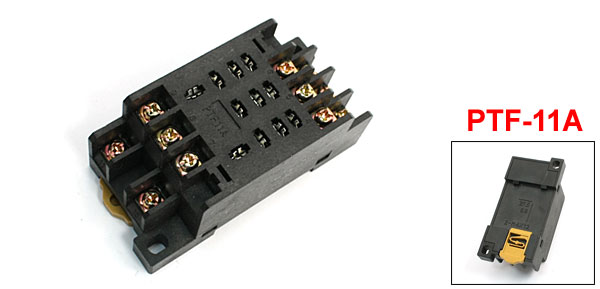 Product Name Power Relay Socket Model PTF-11A Terminal Number 11 Total Size (Approx.) 75 x 37 x 30mm / 2.9" x 1.5" x 1.2" (L*W*T) Material Plastic, Metal Main Color Black, Gold Tone Weight 45g Package Content 1 x Power Relay Socket - Reviews