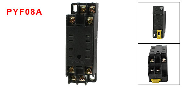 PYF08A 8P Screw Terminal Relay Socket Base DIN Rail Black