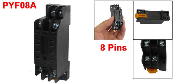 Product Name Relay Socket Base Model PYF08A Fit for HH52P, MY2NJ Pin Number 8 Fixing Hole Size 5 x 4.2mm/0.197" x 0.165"(L*W) Installing Rail Size Standard 35mm Mounting Rail Total Size (Approx.) 76 x 30 x 23mm/3" x 1.2" x 0.91"(L*W*T) Main Color Black Material Plastic, Metal Weight 33g Package Content 1 x Relay Socket Base - Reviews