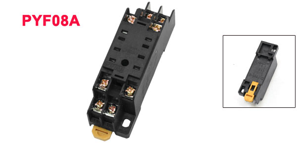 Item Name Relay Socket Type PYF08A Suitable for Flat 8 Pin Relay Size 7.7 x 2.2 x 3cm / 3" x 0.9" x 1.2" (L*W*T) Material Plastic Color Black Weight 30g Package Content 1 x Relay Socket - Reviews