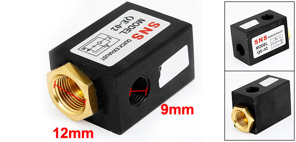 Product Name Quick Exhaust Valve Model QE-02 Power Pneumatic Working medium Air Flow Direction One Way Joint Pipe Bore Size G 1/4'' Threaded Diameter 12mm, 9mm Effective Section Area 27.5mm2 Working pressure 1.5-8Mpa Total Size 51 x 36 x 29mm/ 2" x 1.4" x 1.1" (L*W*H) Material Metal Color Black Net Weight 98g Package Content 1 x Exhaust Valve - Reviews