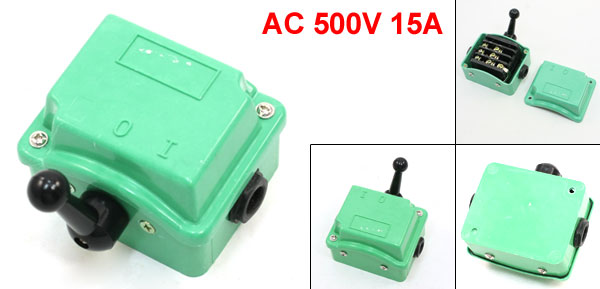 Product Name Reversing Drum Switch Model No. QS5-15A Rated Voltage AC 500V Rated Current 15A Motor Control Rated Capacity 220V/2.5KW, 380V/10KW Applications Forward, Reverse Main Body Size 9.5 x 7 x 6 cm / 3.7" x 2.8" x 2.4" (L*W*H) Main Material Plastic, Metal, Electric Parts Color Green, Black Weight 278g Package Content 1 x Reversing Drum Switch - Reviews