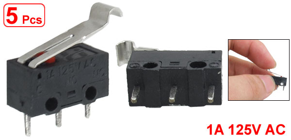 Product Name Micro Switch Actuator Type R Type Lever Rated Load 1A 125V AC Switch Body Size(Each) 1.3 x 0.7 x 0.6cm/ 0.5" x 0.3" x 0.2" (L*W*H) Fixing Hole Dia 0.22cm / 0.09" Actuator Size 1.6 x 0.4cm/ 0.6" x 0.15"(L*W) Material Plastic, Metal Color Black, Silver Tone Net Weight 4g Package Content 5 x Micro Switch - Reviews