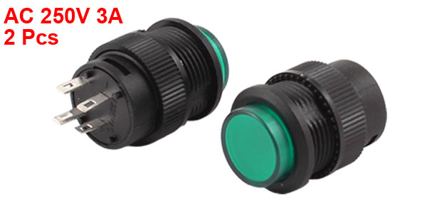 Terminals Quantity 4 Pins Mounting Hole Diameter 16mm / 0.6" Button Diameter 13mm/ 0.5" Overall Size 18 x 30mm/ 0.7" x 1.2"(D*H) Material Plastic & Metal Color Green, Black Weight 10g Package Content 2 x Push Button Switch - Reviews