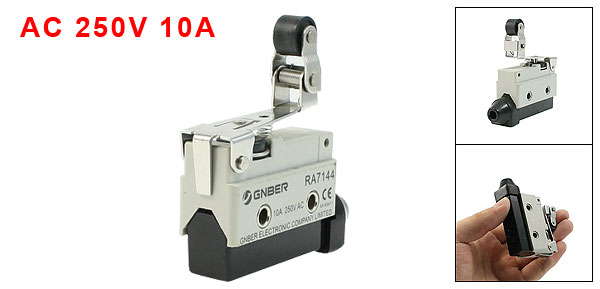 Product Name Limit Switch Model No. RA7144 Actuator Action Momentary Actuator Type Long Hinge Roller Lever Contact Type 1 NO, 1 NC, 1 Com(SPDT) Terminal Type Screw Terminals Power 250V, 10A Roller Size 1.22 x 0.8cm / 0.48" x 0.3"(D*T) Actuator Size 6.8 x 1.15 x 2.7cm / 2.7" x 0.45" x 1.1"(L*W*H) Hole Dia 0.42cm / 0.165" Main Body Size 5.44 x 2.16 x 3.75cm / 2.1" x 0.85" x 1.5"(L*W*H) Overall Height 7.7cm / 3" Material Metal, Plastic & Rubber Color As Picture Show Net Weight 64g Package Content 1 x Limit Switch - Reviews