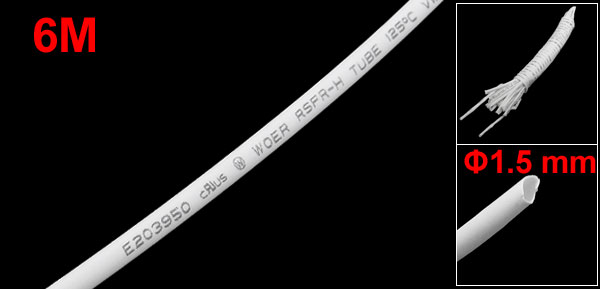 Ratio 1.5mm Dia White Polyolefin Heat Shrinkable Tube 6M 19.7Ft