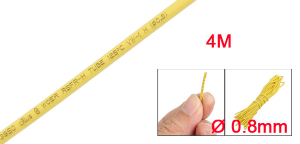 Ratio 2:1 0.8mm Diameter Polyolefin Heat Shrinkable Tube Yellow 4M