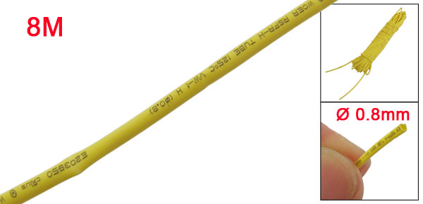 Ratio 2:1 0.8mm Dia Yellow Polyolefin Heat Shrinkable Tube 8M 26.2Ft