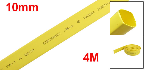 Ratio 2:1 10mm Dia Yellow Polyolefin Heat Shrinkable Tube 4M Long