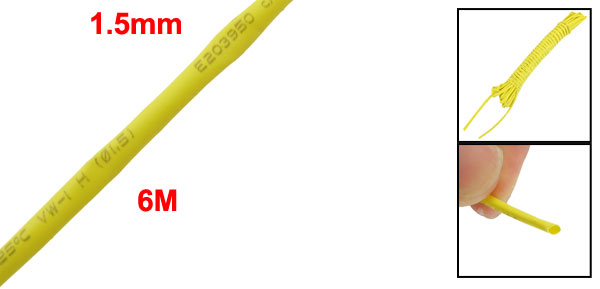 Ratio 2:1 1.5mm Dia Yellow Polyolefin Heat Shrinkable Tube 6M 19.7Ft