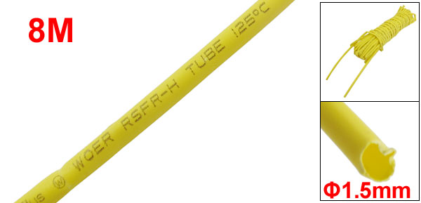 Ratio 2:1 1.5mm Dia Yellow Polyolefin Heat Shrinkable Tube 8M 26.2Ft