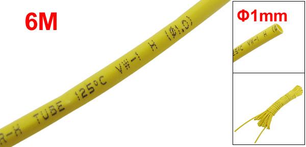 Ratio 2:1 1mm Dia Yellow Polyolefin Heat Shrinkable Tube 6M 19.7Ft