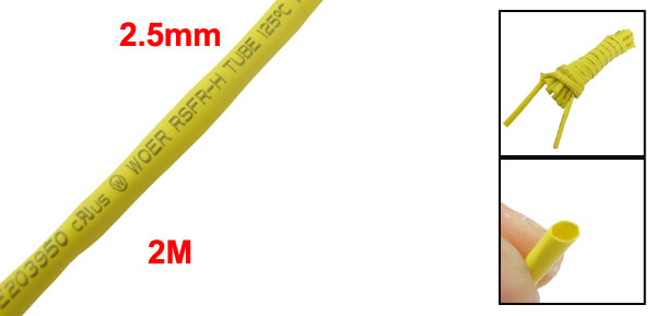 Ratio 2:1 2.5mm Dia Yellow Polyolefin Heat Shrinkable Tube 2M 6.6Ft