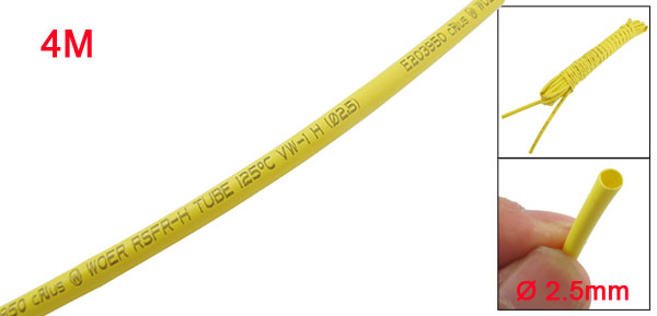 Ratio 2:1 2.5mm Dia Yellow Polyolefin Heat Shrinkable Tube 4M 13.1Ft
