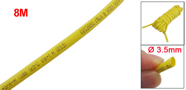 Ratio 2:1 3.5mm Dia Yellow Polyolefin Heat Shrinkable Tube 8M Long