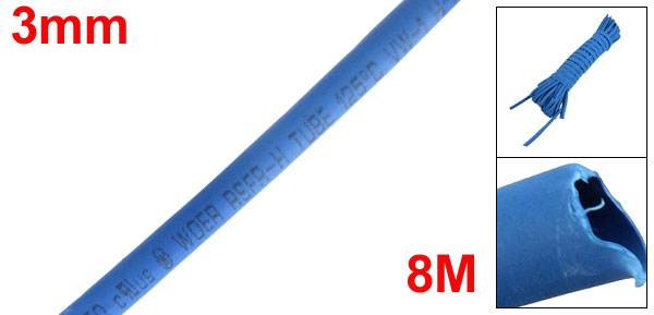 Ratio 2:1 3mm Dia Blue Polyolefin Heat Shrinkable Tube 8M Long