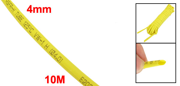 Ratio 2:1 4mm Dia Yellow Polyolefin Heat Shrinkable Tube 10M 32.8Ft