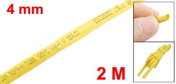 Ratio 2:1 4mm Dia Yellow Polyolefin Heat Shrinkable Tube 2M 6.6Ft