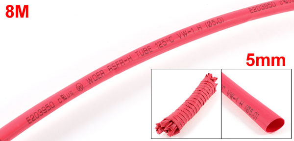 Ratio 2:1 5mm Dia Heat Shrinkable Tube Shrinking Tubing Red 8m Long