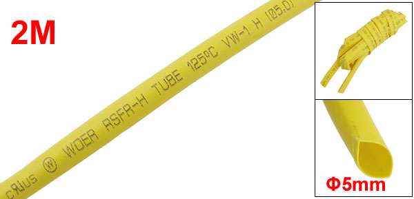 Ratio 2:1 5mm Dia Yellow Polyolefin Heat Shrinkable Tube 2M Long
