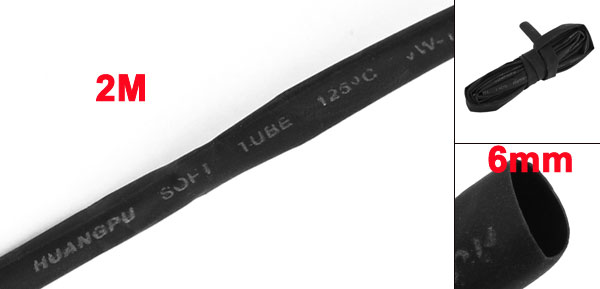 Ratio 2:1 6mm Dia Black Polyolefin Heat Shrinkable Tube Tubing 2M